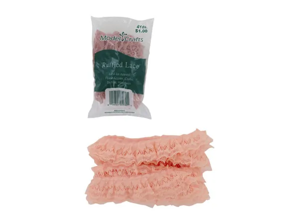 Peach Ruffled Lace Trim for Sewing and Crafting, 4 Yards |
