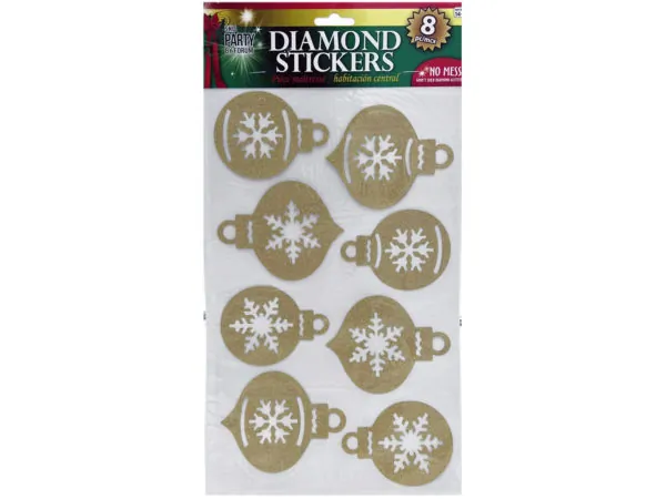 Elegant Gold Diamond Holiday Sticker Ornaments - 8 Piece Set |