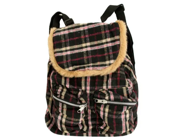 GW578 Bulk Buys Faux Fur Trim Black & Red Plaid Messenger Backpack 1 5 $47.43 View 1 Seller