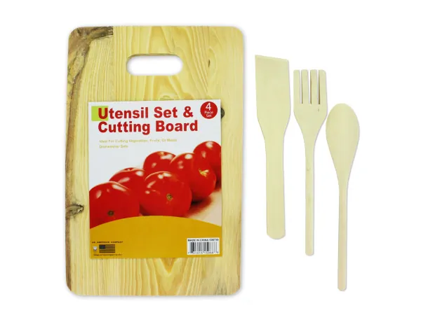 Wooden Cutting Board Set with Kitchen Utensils |