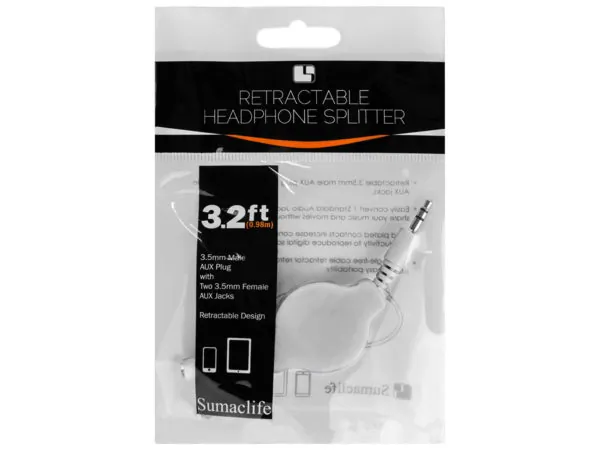 Compact Retractable Headphone Splitter Cable - White |