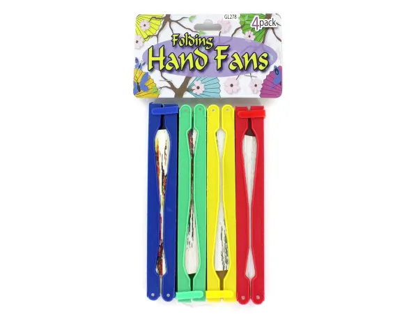 Colorful Folding Hand Fans with Floral Patterns - Set of 4 |