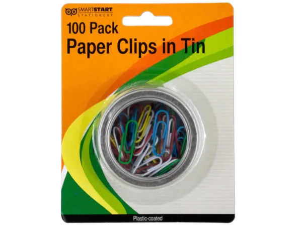 Colorful Plastic Coated Paper Clips Set in Tin |