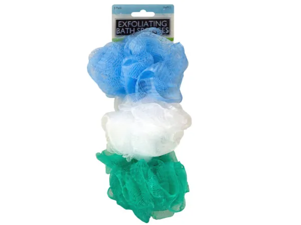 3-Piece Exfoliating Bath Sponge Set with Hanging Loops |