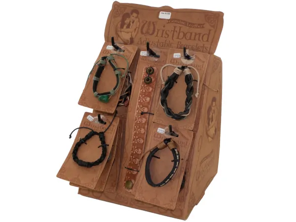 GW186 Bulk Buys Genuine Leather Adjustable Bracelets Display Set 1 5 $40.42 View 1 Seller