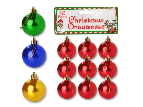 Assorted Small Holiday Ornament Balls - 12 Pack |