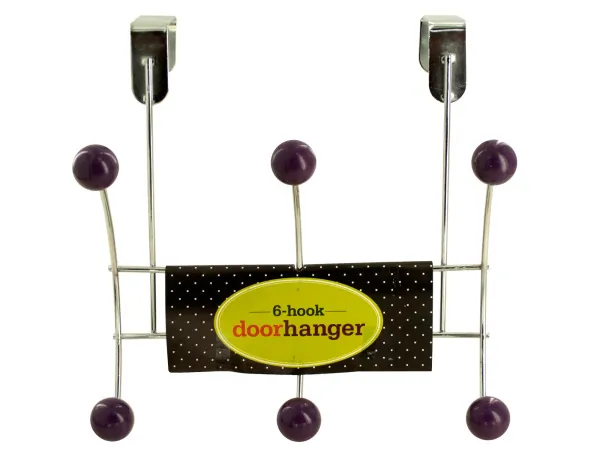 Durable 6 Hook Over Door Hanger with Purple Ball Ends |