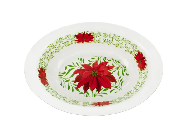 SA613 Bulk Buys Decorative Poinsettia Oval Serving Bowl for Holidays 1 5 $40.53 View 1 Seller