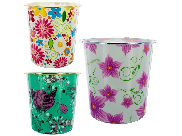 Round Floral Design Wastebasket |