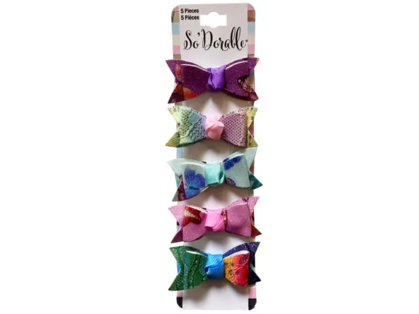 5-Piece Fuzzy Hair Bow Clips Set in Multi-Color |
