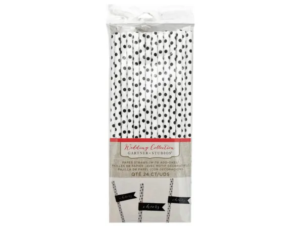 Polka Dot Paper Straws with Cheers Flag - 24 Count |