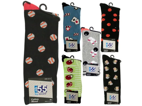 Men's Assorted Theme Cotton Blend Dress Socks |