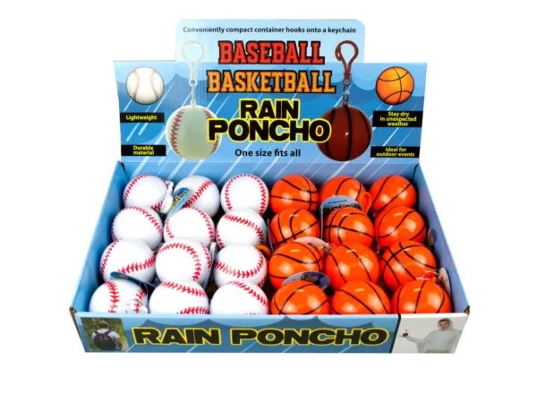 Sporty Rain Poncho Keychain - Baseball & Basketball Styles |