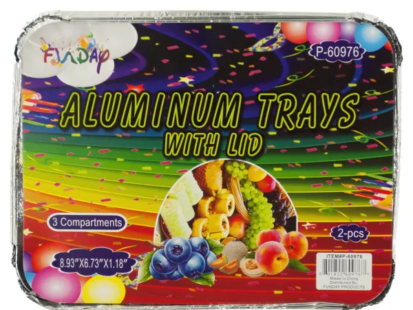 Three-Section Aluminum Food Trays with Foil Lids |