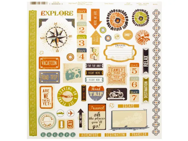 Travel-Themed Embossed Sticker Sheet for Crafting |