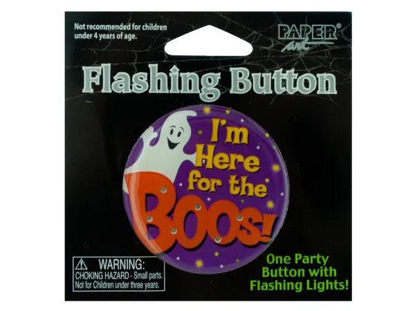 Flashing Halloween Party Button - I'm Here for the Boos! |