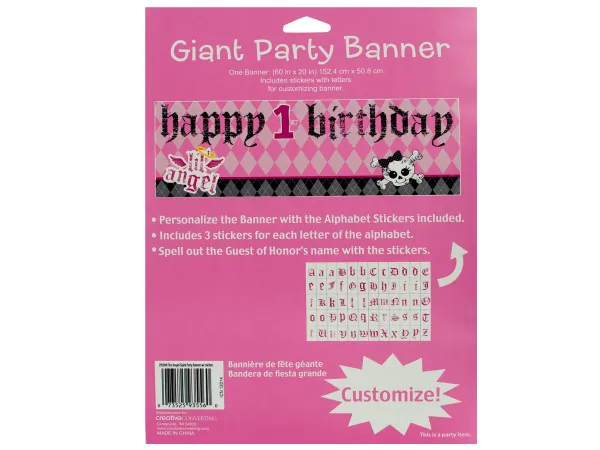 Giant 60x20 Birthday Banner - Happy 1st Birthday Angel |