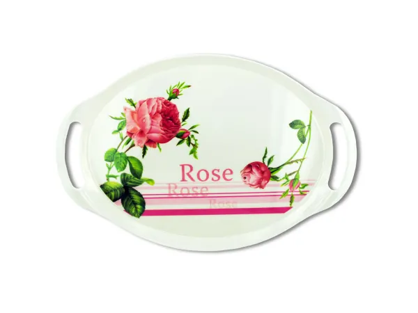 Elegant Rose Design Handled Serving Tray |