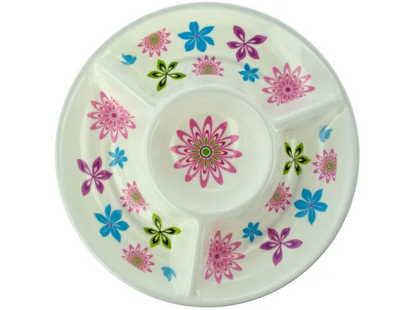 Floral Print 4-Section Chip and Dip Serving Dish |