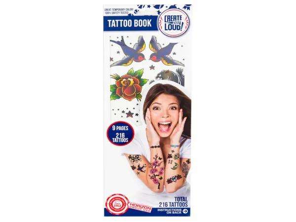 Assorted Temporary Tattoo Collection Book with 216 Tattoos |