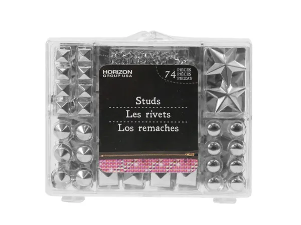 Edgy 74-Piece Silver Prong Studs Set in Organizer Case |