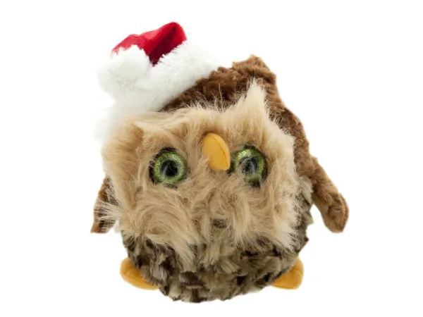 Festive Plush Owl with Santa Hat - Holiday Decor |