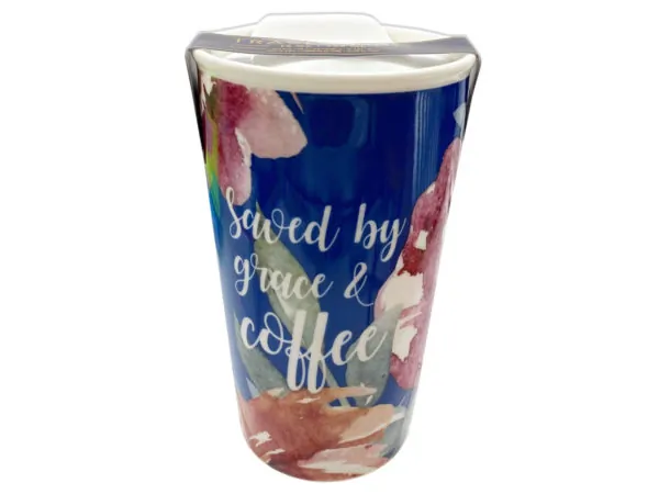 Ceramic Travel Mug - Saved by Grace & Coffee - 12oz |