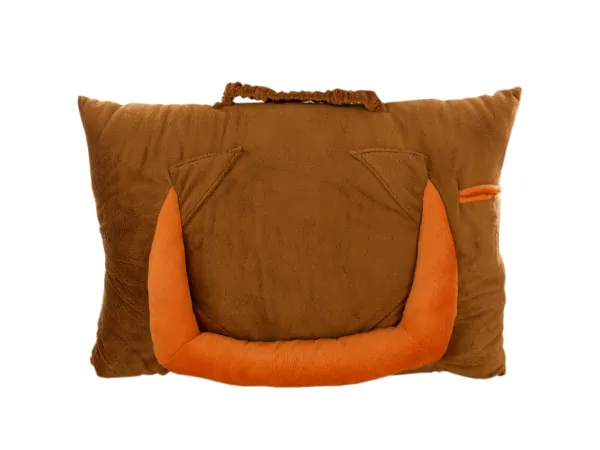 Soft Brown Plush Tablet Pillow with Accessories Pocket |