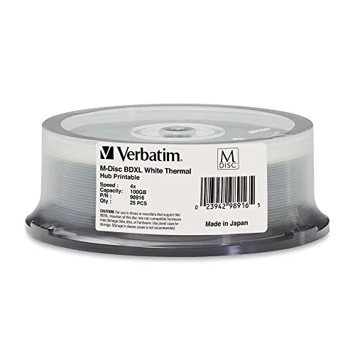 Verbatim M-Disc BDXL, 98916, 100GB, 4X, White Thermal Hub Printable, 25PK Spindle |